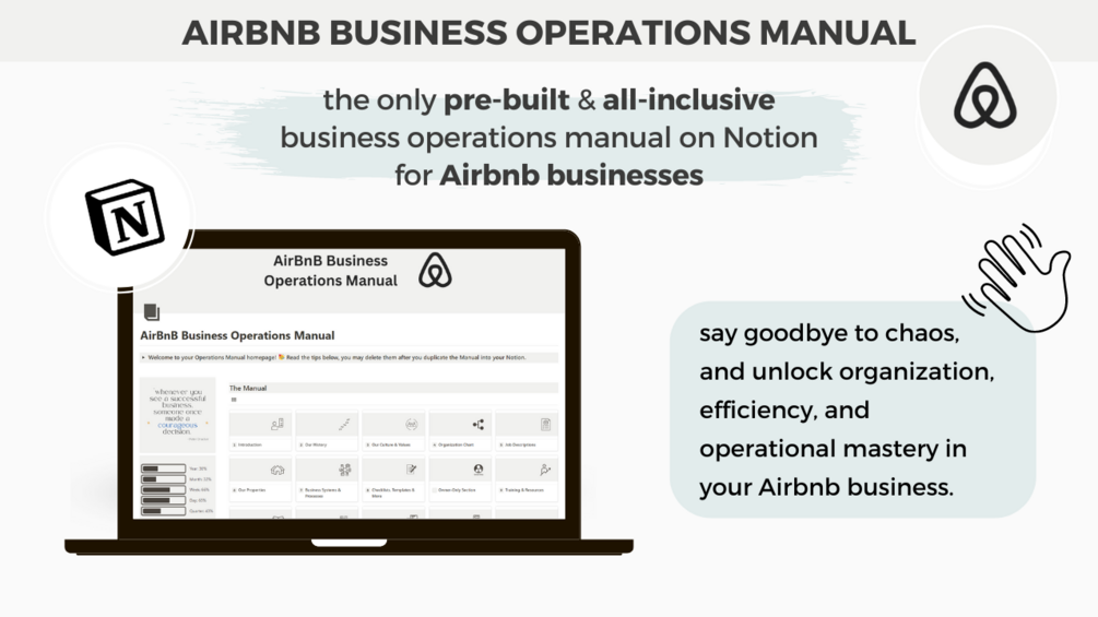 Perfect for short-term rental business owners who want to get completely organized and streamlined by centralizing their business's knowledge hub, implement structured systems in their business, save time on admin work, and ensure seamless daily operations.