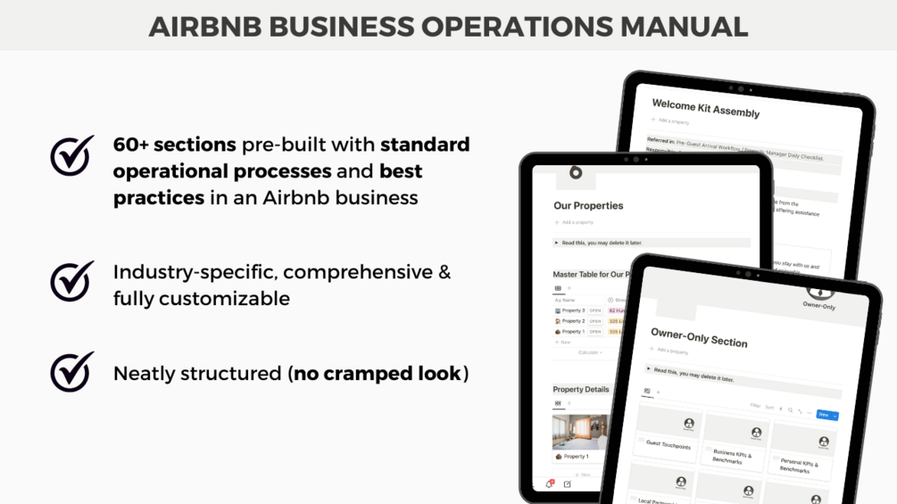 Designed for Airbnb business owners who want to keep a clean, organized, and easy-to-navigate single source of knowledge for their business and team.